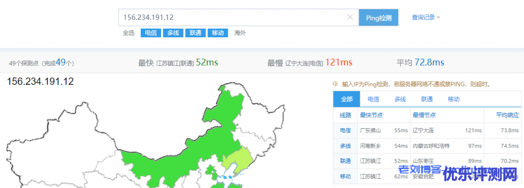 TudCloud香港VPS国内三网Ping测试结果:
