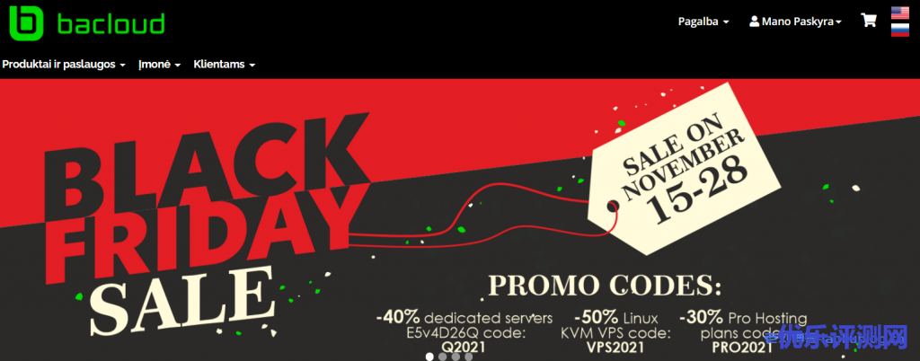 本月15日到28日,立陶宛主机商bacloud开展自家的2021年黑色星期五促销活动(BLACK FRIDAY SALE),Xeon E5v4U26Q独立服务器一次性6折优惠(最多买3个月),Linux KVM VPS 5折(最多买6个月),Hosting PRO 7折(建议年付,可叠加年付83折优惠使用)。