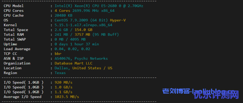 那么Database Mart怎么样?Database Mart美国线路究竟如何呢?带着疑问,老刘博客入手了一台Database Mart机器DBM Hosting –Professional Linux VPS(配置是4核8G内存160G硬盘150Mbps不限流量,配置详情查看)进行了简单测评。
