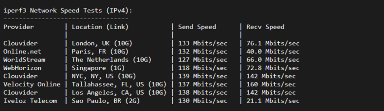 配置信息,CPU为E5-2680 2.7G主频,默认开启bbr测试,硬盘I/O平均为1023MB/s,非常优秀: