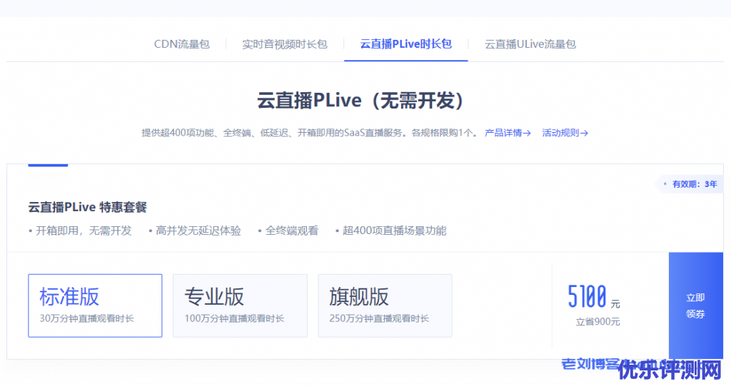 | 云直播Plive免费体验套餐 | 云直播PLive 特惠套餐标准版 | 云直播PLive 特惠套餐专业版 | 云直播PLive 特惠套餐旗舰版 |