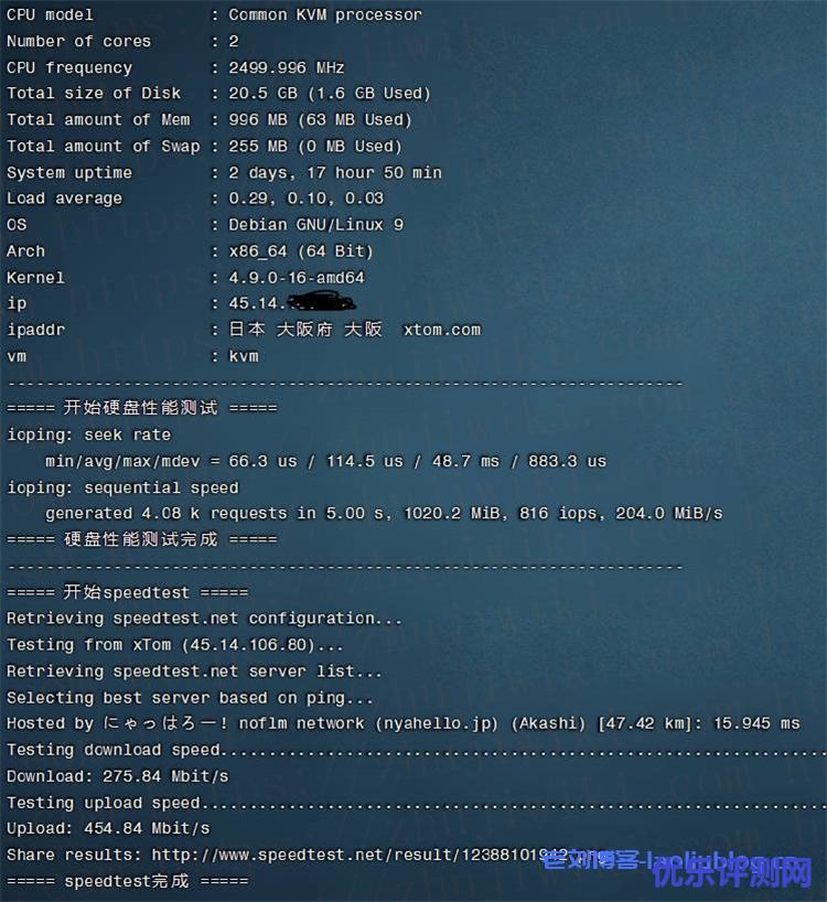 V.PS怎么样?针对《V.PS黑五促销:香港、德国、西雅图、纽约、荷兰、爱沙尼亚KVM VPS永久优惠50%,每用户限购1台》,黑五活动优惠后,V.PS机器性价比不错:€2.98/月/2核/1GB内存/20GB SSD空间/1TB流量/1Gbps端口。老刘博客本篇文章特别挑选了V.PS日本KVM VPS进行了简单测评,供读者们选购参考。