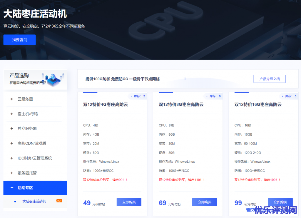 小鹿云双12活动I–枣庄云服务器,提供100G防御 免费防CC 一级骨干节点网络,产品介绍文档