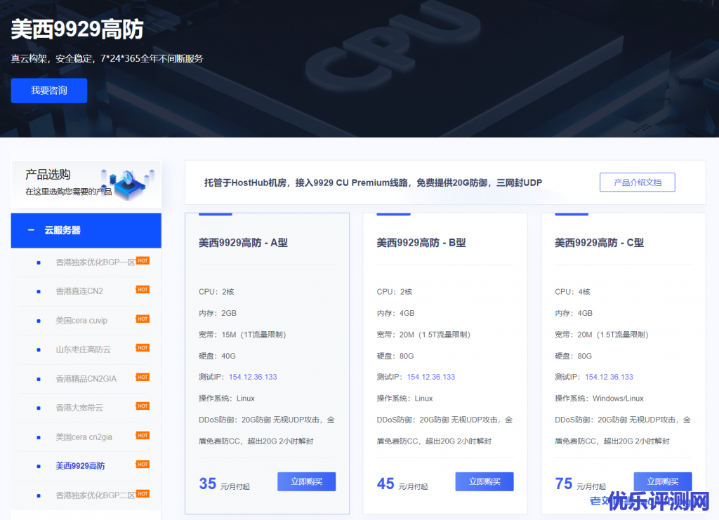 小鹿云双12活动II-美西9929高防,托管于HostHub机房,接入9929 CU Premium线路,免费提供20G防御,三网封UDP,产品介绍文档