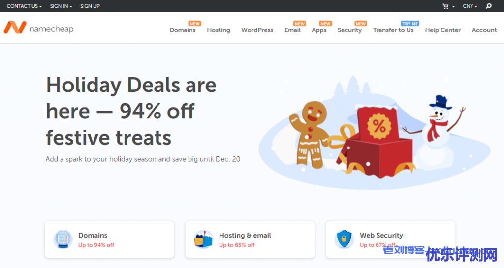 Namecheap假日促销活动现已开始,截止时间是到2021年12月20日(可能圣诞节期间还有活动吧)