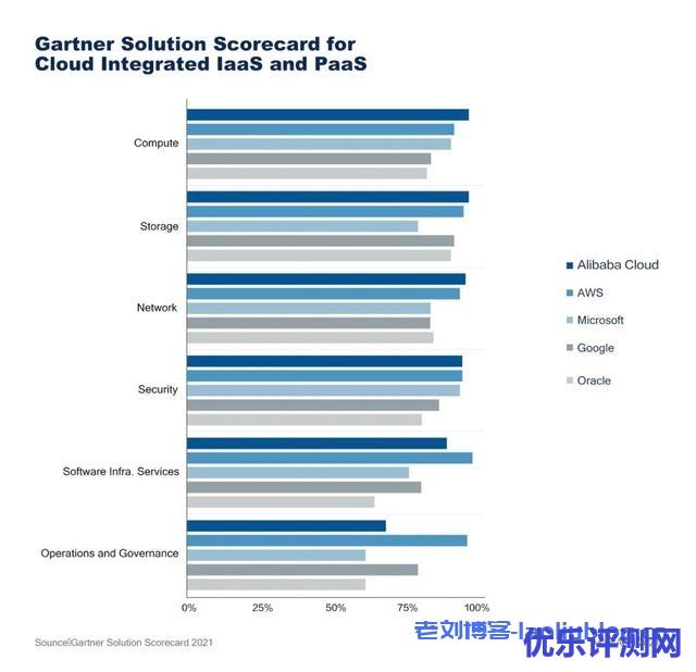 《Gartner Solution Scorecard 2021》是业内最权威的云计算评估报告之一,评估对象包括亚马逊、微软、阿里巴巴、谷歌、IBM和Oracle等全球顶级云厂商,评估标准非常严苛,涉及计算、存储、网络、安全、韧性、数字业务基础设施等9大类和270个子项,对云厂商进行全面评估。