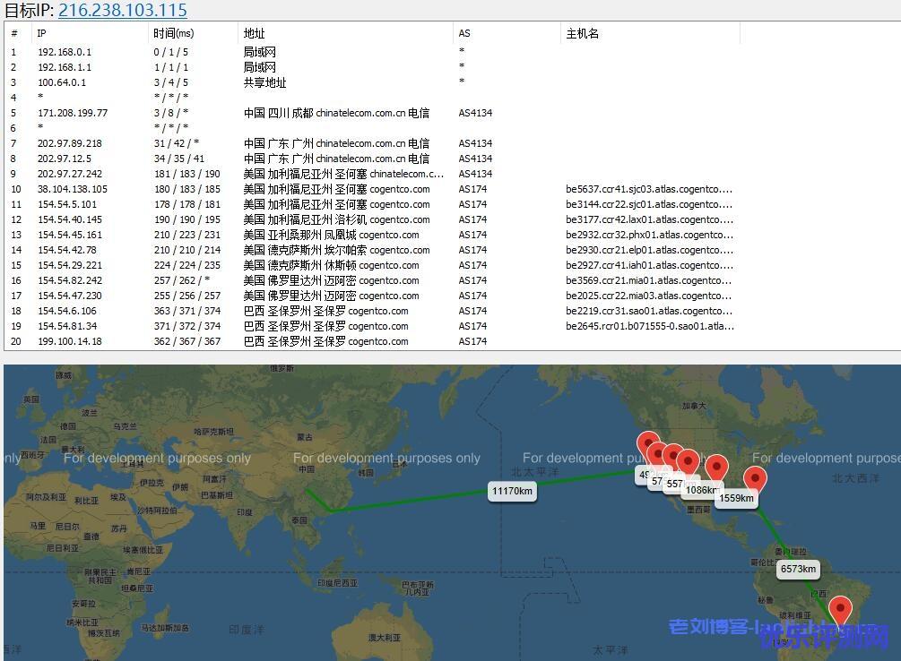 可以看到Vultr的圣保罗路由是先到美国,然后再直连圣保罗。