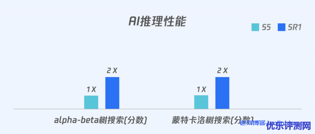 结果表明,SR1 在蒙特卡洛数搜索、alpha-beta 树搜索方面有较大优势,比 S5 提升1倍以上。