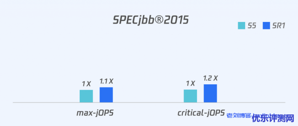 选择 SPEC CPU®2017 中的 AI 推理性能指标。deepsjeng_r ( alpha-beta 树搜索 ) 基于 2008 年世界计算机速度国际象棋冠军 Deep Sjeng WC2008,专注于获得尽可能高的演奏强度;Leela_r ( 蒙特卡洛树搜索 ) 是一个围棋引擎,具有基于蒙特卡罗的位置估计、基于置信度上限的选择性树搜索和基于 Elo 评级的移动估值。本次测试在相同规格的 SR1 和 S5 实例下进行。