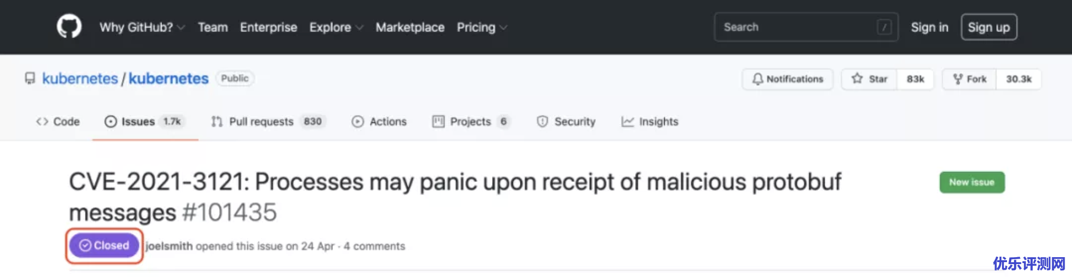以 2021 年 1 月发现的 CVE-2021-3121 安全漏洞为例,CVSS 危急分数高达 7.5。但截止 2021 年 9 月 Kubernetes 社区: