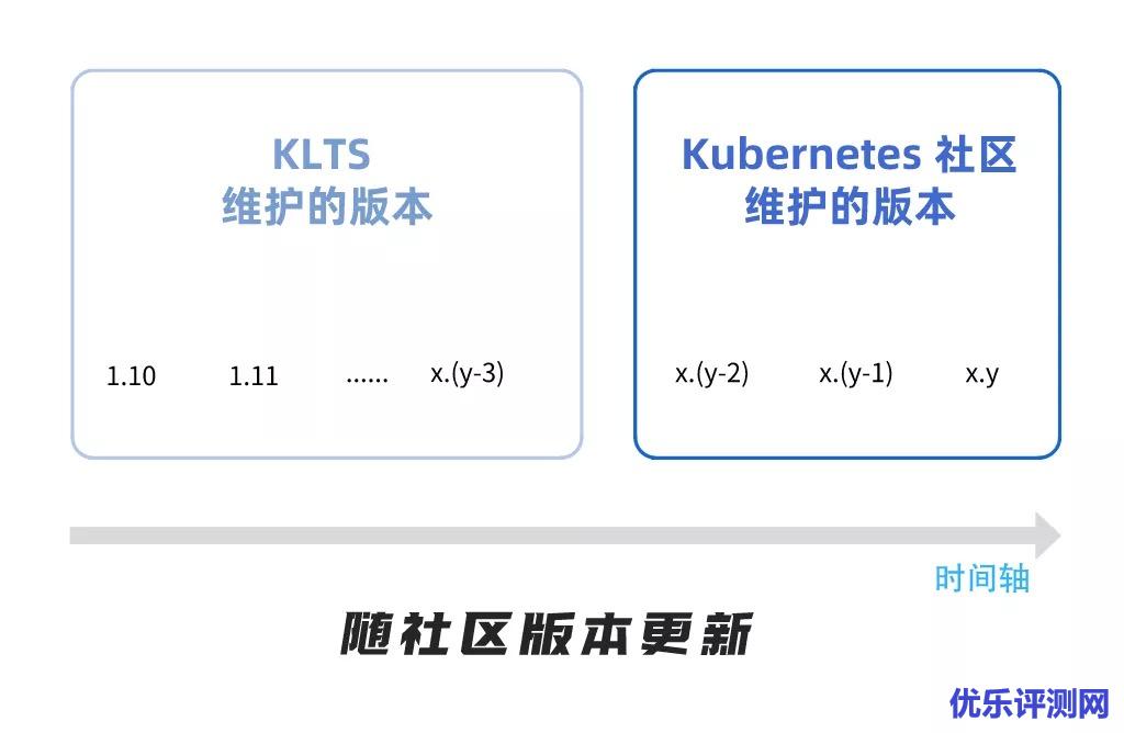 如上图所示,Kubernetes 社区对某个版本的维护周期通常是一年左右,而 KLTS 则是在接下来的三年内提供长期维护,直至代码无法兼容,才会将相应版本淘汰。