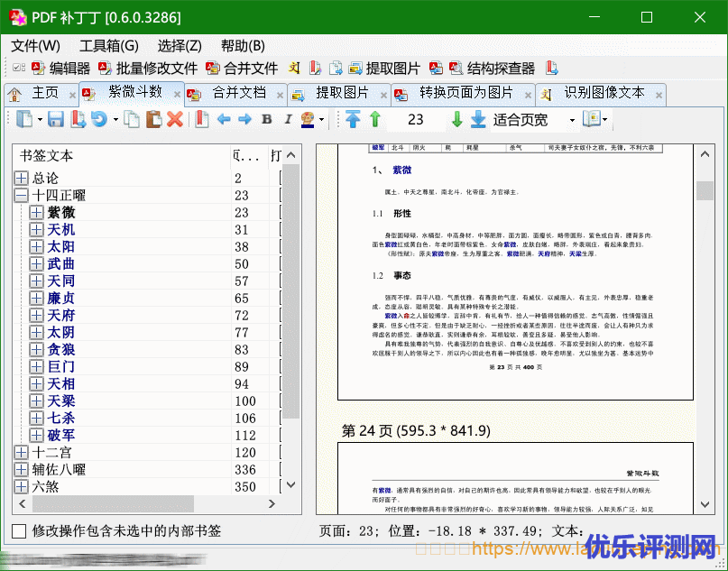 据扩展迷了解,“PDF 补丁丁”内置了一个强大 PDF 书签编辑器,不仅带有从右到左的阅读界面,可自动生成能够精确定位到页面中间的书签、并可对 PDF 书签属性进行批量修改。