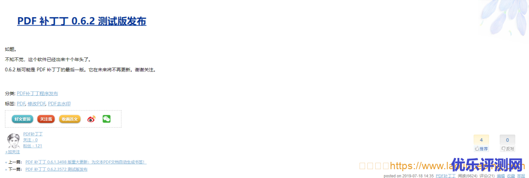 更重要的是,“PDF补丁丁”长期以来都实施的免费政策,安全绿色无打扰,不仅没有广告,也没有弹出多余的对话框。其开发者突然宣布将软件开源,并非在大家的意料之外。事实上,在2019年7月发布0.6.2版以后,开发人员便曾决不再对“PDF 补丁丁”进行更新。