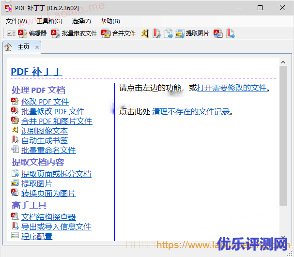 据官方博客介绍,“PDF 补丁丁”是一款永久免费的多功能 PDF 工具箱,具有修改 PDF 信息、PDF 书签编辑器、生成 PDF 书签、制作 PDF 文件、拆分或合并 PDF 文件、导出 PDF 文件中图片、替换字库 等功能。