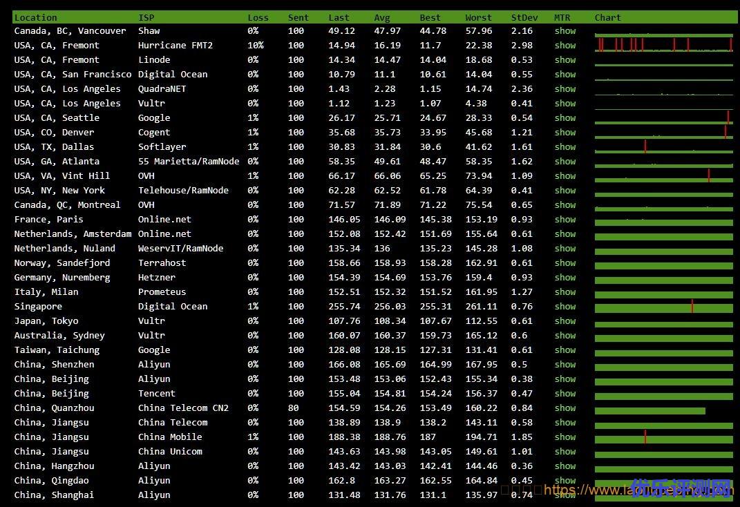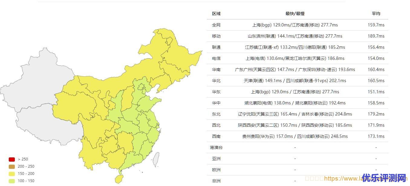 测试时间为晚高峰期,延迟稍微高于白天,延迟在160ms-180ms,丢包率非常低,多次测试后,非常稳定。