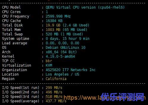 开启了BBR,Debian系统,硬盘IO还可以,正常表现,应该是Intel处理器,不是AMD。