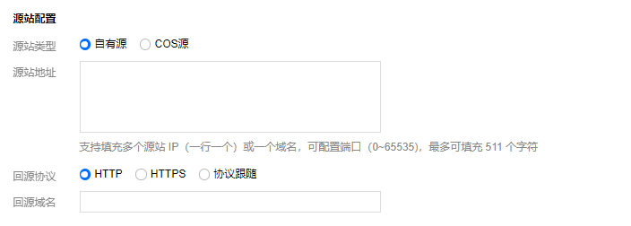 配置业务源站相关信息,CDN 节点在缓存无资源时,会回源站拉取并缓存: