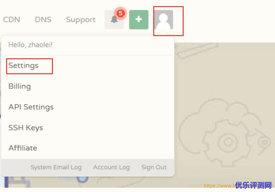 2)cloudcone如何查看自己的注册时间,登录后台,点击右上角的头像,选择Settings,即可看到。