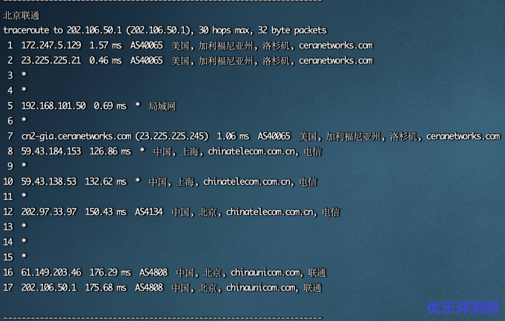 NatYun商家成立于2021年,企业级运营,主营IDC业务,成立至今稳定运营,用户也再逐日增长。NatYun在全球云计算服务企业,已在香港、美国等多地建立骨干级云计算数据中心资源,包括接入超100G网络带宽,超过数10余条的丰富网络带宽, 精品CN2 GIA、联通、移动点对点直连带宽以及国际顶尖品牌硬件。。那么NatYun的美国系列“美国CERA CN2 GIA”三网CN2线路的VPS情况如何呢?云搜网主机测评给大家来做个简单的测评吧,大家自行看数据说话吧!