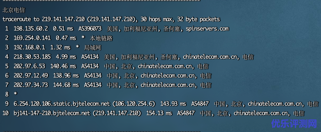 回程,到国内电信:从电信在美国圣何塞的节点直连回国