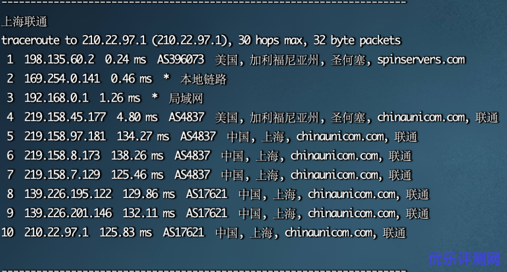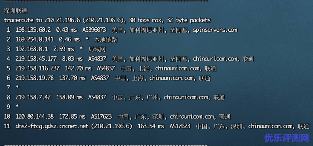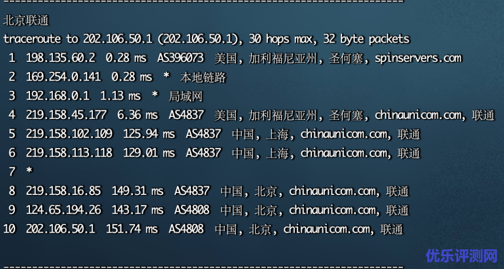 回程,到国内联通:从联通在美国圣何塞的节点走AS4837直连回来