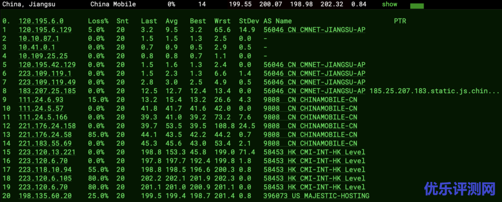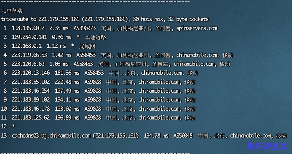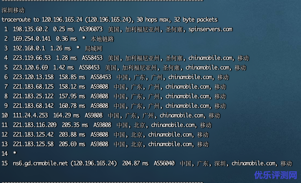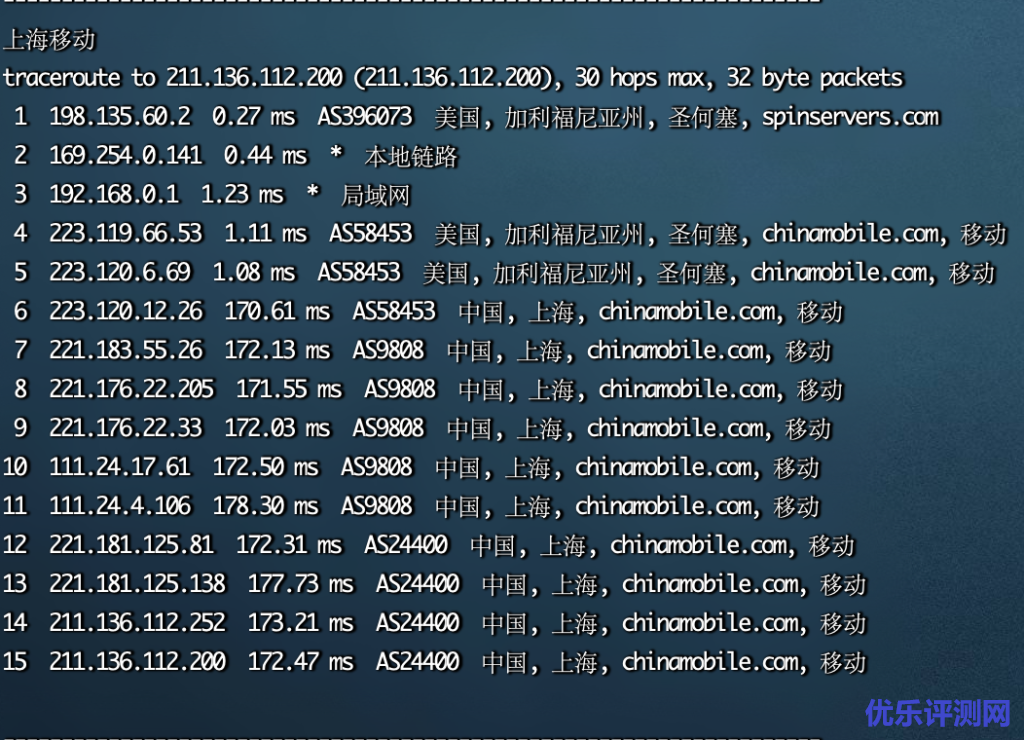 回程,到国内移动:从移动在美国圣何塞的节点直连回来