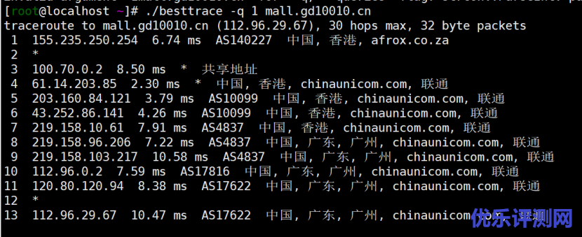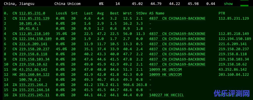 联通回程直连: