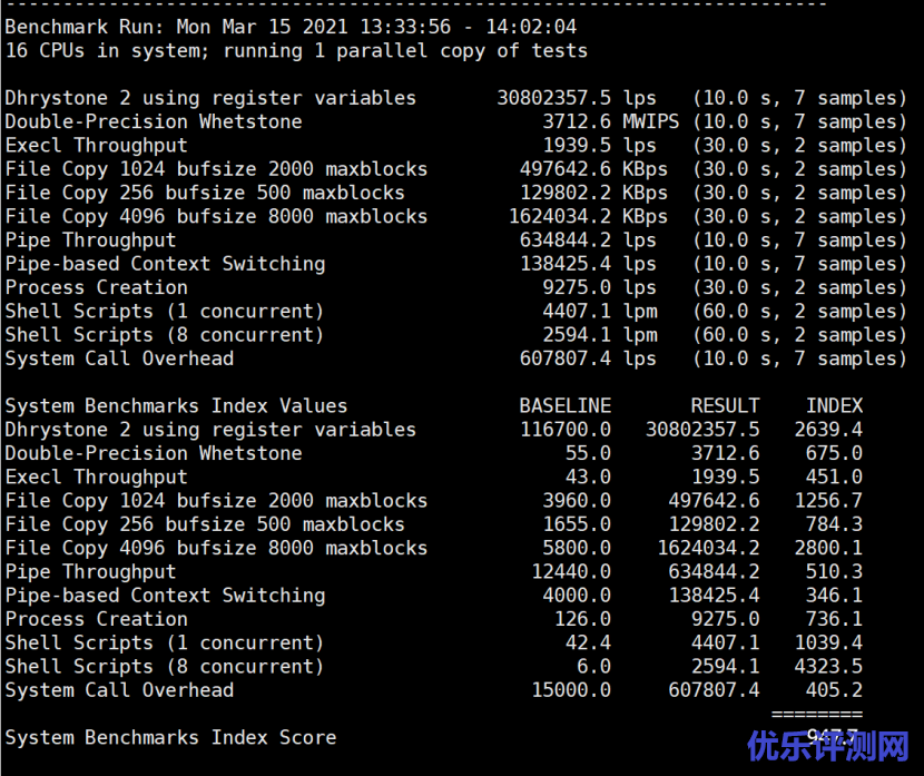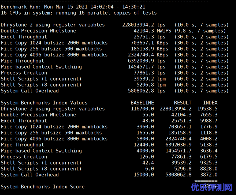 Unix bench mark,(e5-2650) 单核凑合,多核跑出来的实际效果居然和双路的L5630差不多…