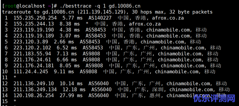 联通去程走骨干直达: