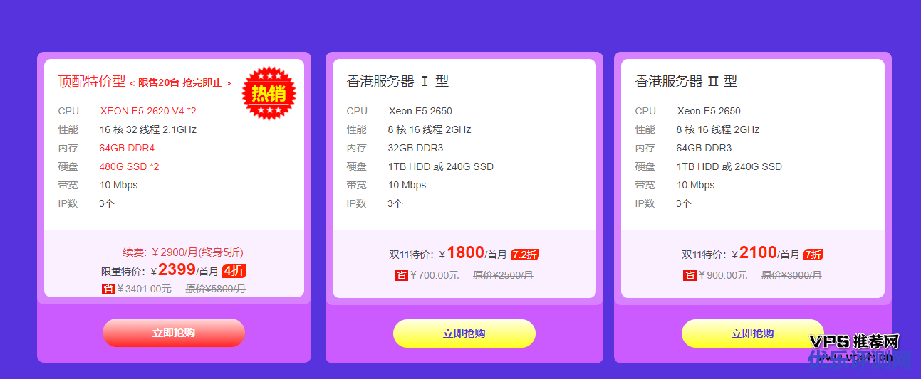 E5-2620V4*2 顶配机专享4折,续费低至 5 折 2900元/月。
