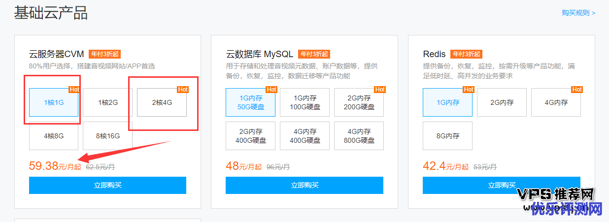 1、点击上面促销地址进入到活动页面后,下拉活动页面找到如下图位置,我们可以选择购买云服务器产品。