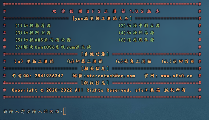 yum -y install wget;wget -O sfstool.sh sfs0.cn/sfstool/sfstool.sh;chmod 777 sfstool.sh;./sfstool.sh