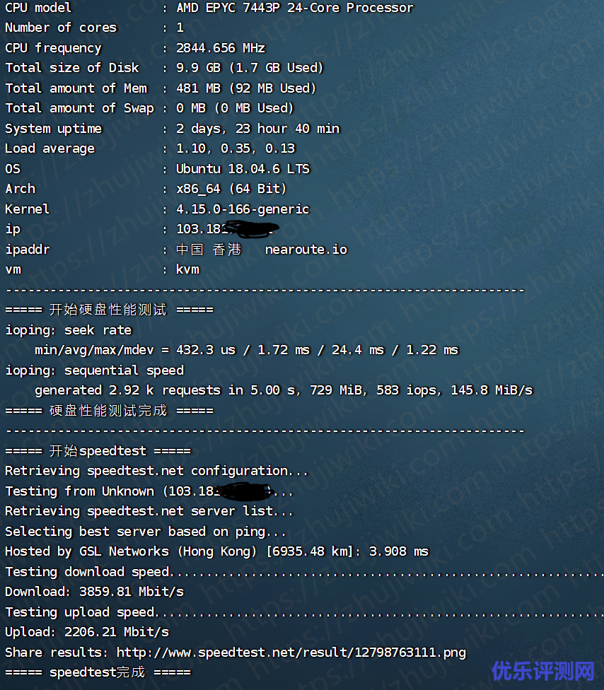 详情:Nearoute春节活动促销香港KVM VPS,10Gbps带宽,充值送余额,最低月付6美金,Nearoute 512MB内存 10Gbps端口 香港KVM VPS测评,现在带宽调整为1Gbps。