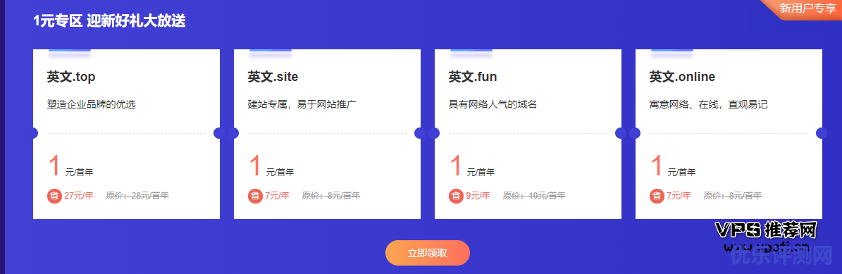 新网27周年庆,域名活动优惠,其中新人域名专区域名20元/首年,域名9.9元/首年,.xyz域名1元/首年,.shop域名1元/首年,还有其它一些后缀都是1元/首年的。老用户购买价格高一些,域名43元/首年,域名19元/首年,有需要的同学可以了解下。