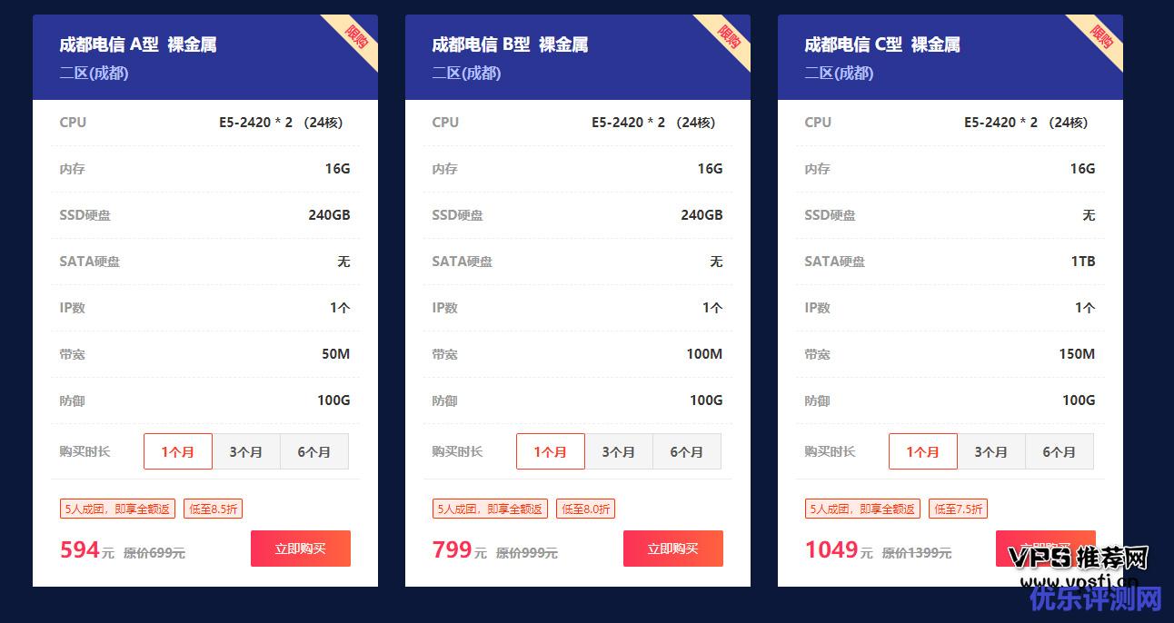 物理机拼团,成都性比价不错,带50M大带宽,100M,150M等,看自己需求购买,拼团成功后,团长可以免单,还是比较不错的。