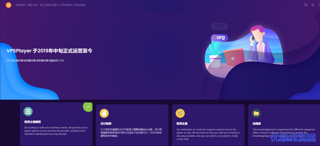VPSPlayer限量促销10台美西Cera机房服务器,美国原生IP,CU4837线路,独享AMD CPU,除Linux系统外还可以选择Windows2008/2016操作系统,支持支付宝,有需要高配美国原生IP VPS的朋友不要错过了!VPSPlayer(VPS玩家)成立于2019年8月,主营中国香港CN2、深圳BGP、美西AMD VPS,全部KVM虚拟化。