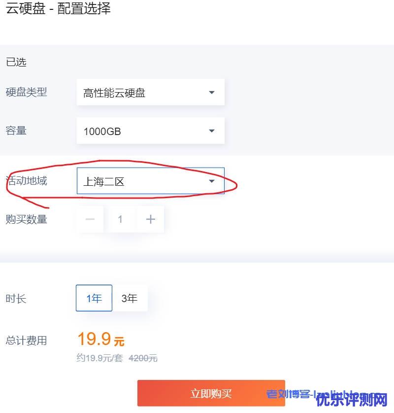 3、选择区域时需要与轻量云服务器位置一致