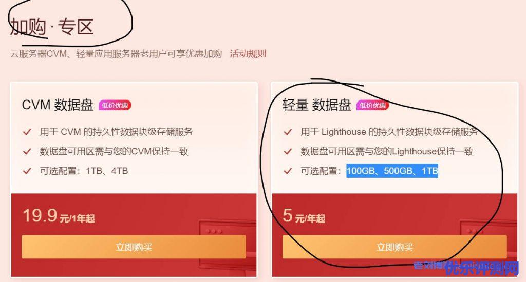 这次最给力的轻量云服务器 数据盘: