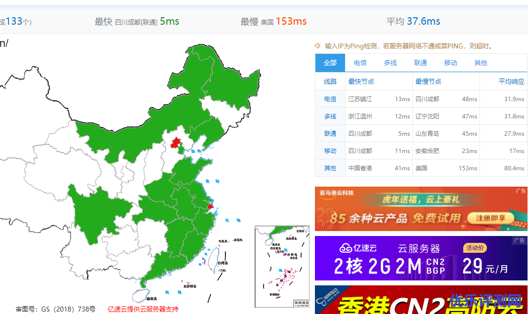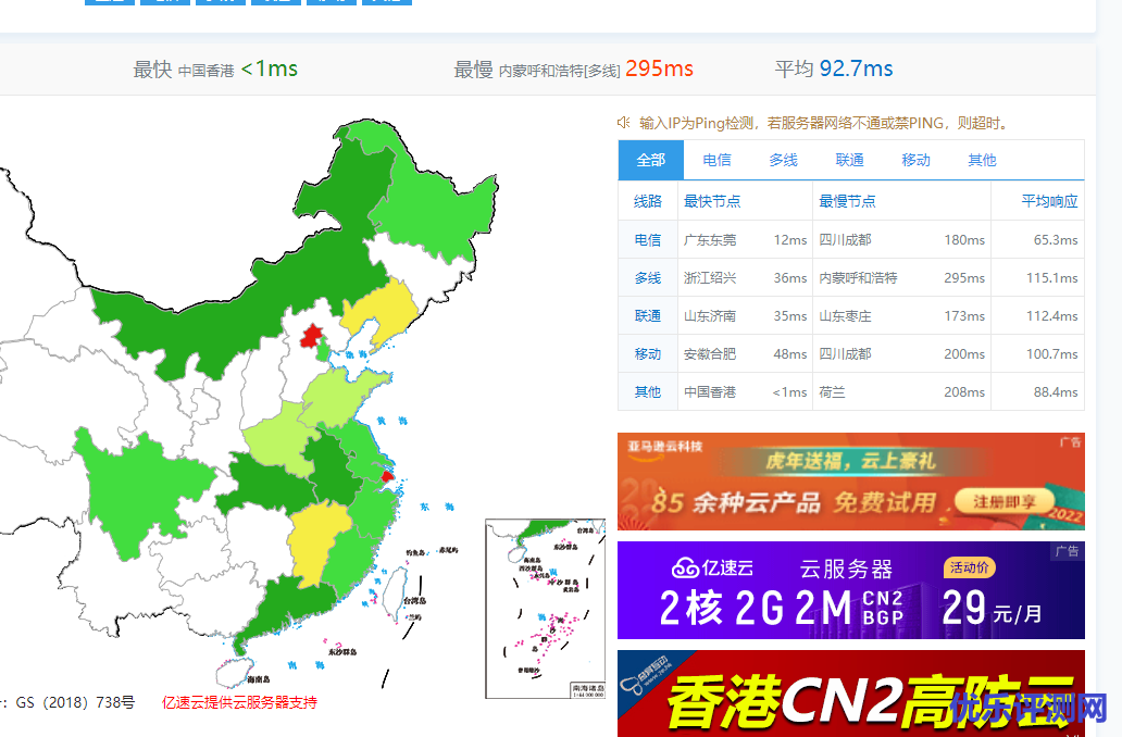 国内站长工具简单评测,国内延迟没什么看的,节点主要是位于高防地区,如台州,绍兴,山东等地区,防护效果好。