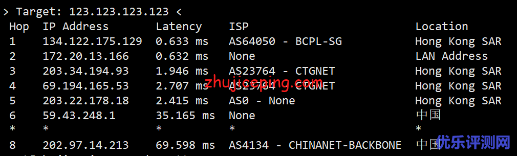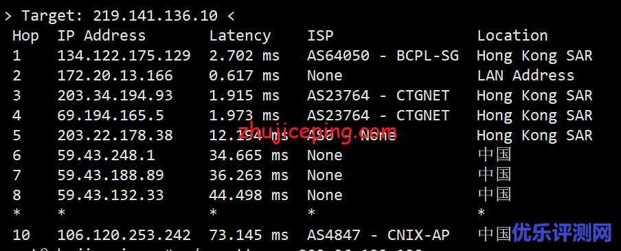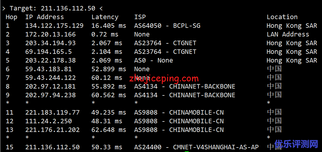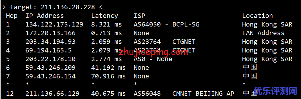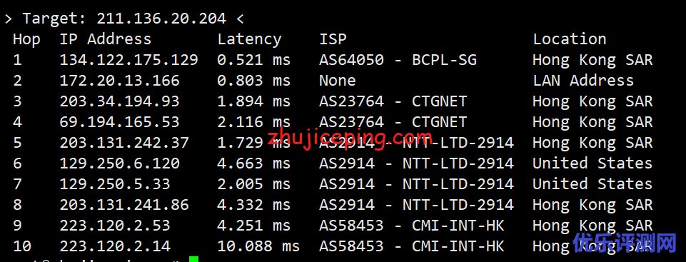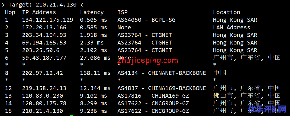 回程,电信和联通都是走CN2,移动里面广州方向走的是CMI直接回来,北京和上海都是CN2链路回来!