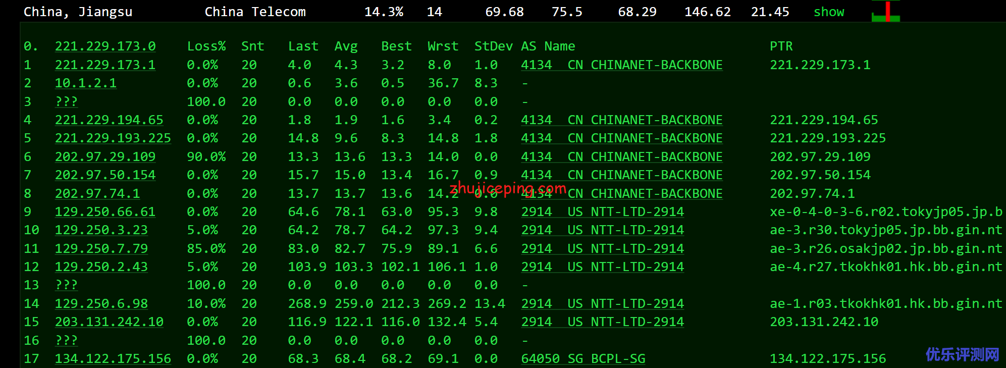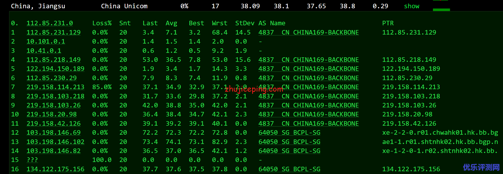 回程,到大陆联通:一样是走的电信CN2链路回来,在大陆转联通