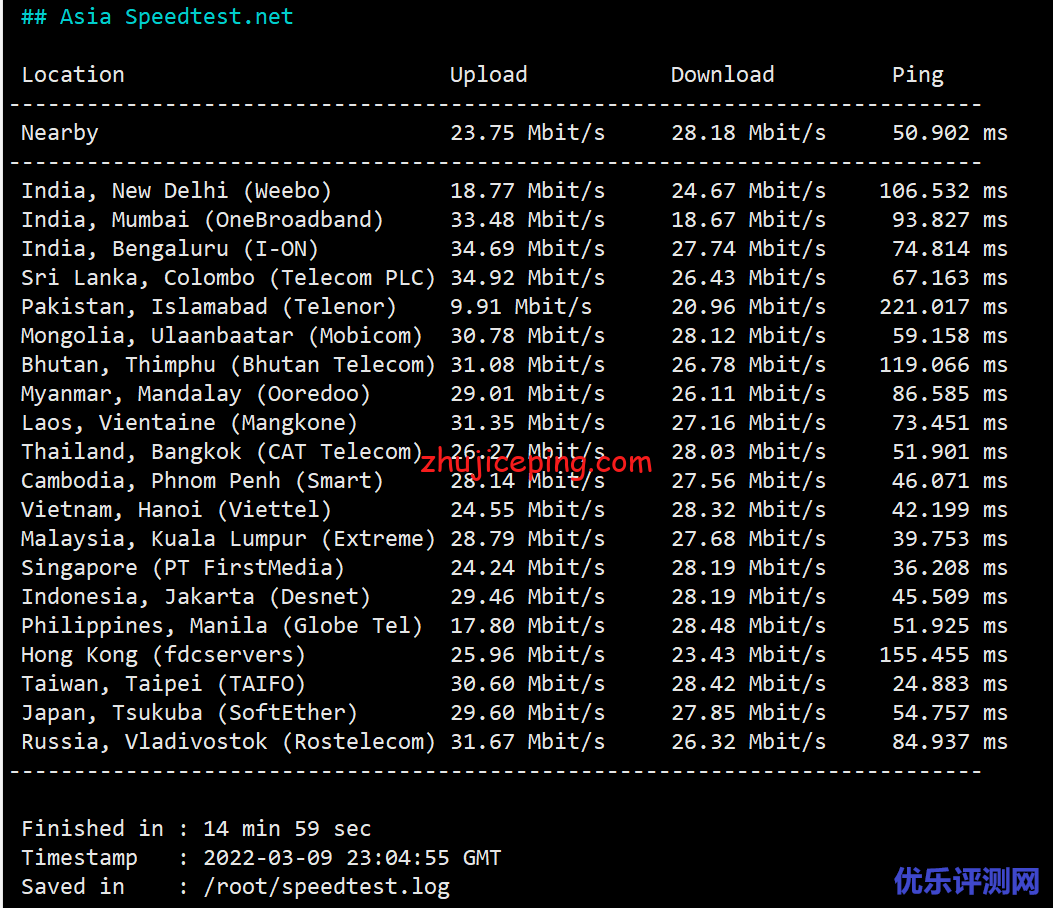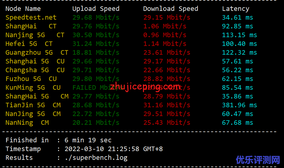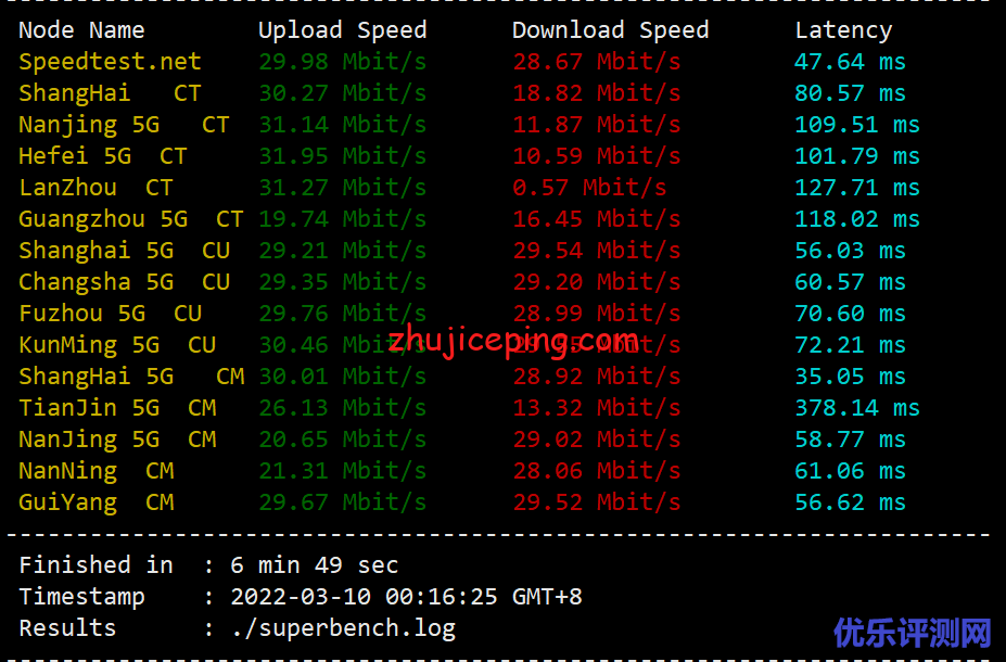 重点关注下VPS的上下行带宽在大陆能跑到什么程度吧!我们用speedtest.net在大陆的三网节点测试,数据大致如下: