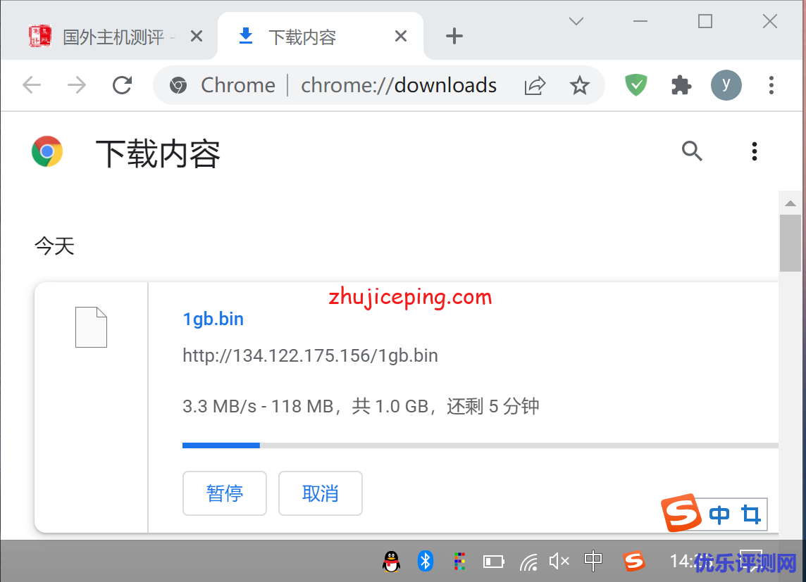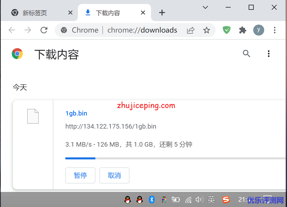 存放在测试VPS上的数据文件,广州电信直接用Chrome下载测速: