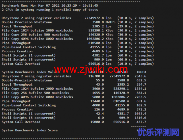 Unix bench Mark跑分