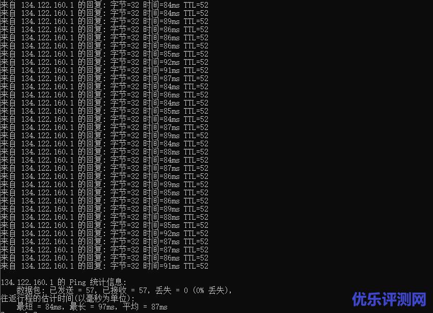 可以看到我本地Ping延迟在87ms左右,网络还是比较稳定的,基本没有丢包的情况。