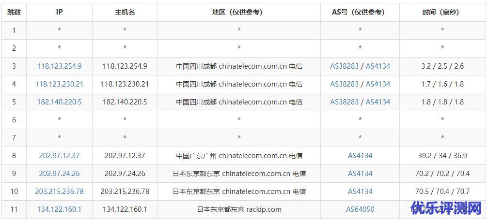移动网络去程则是走的广州网口,然后转向香港,最后到达日本机房。