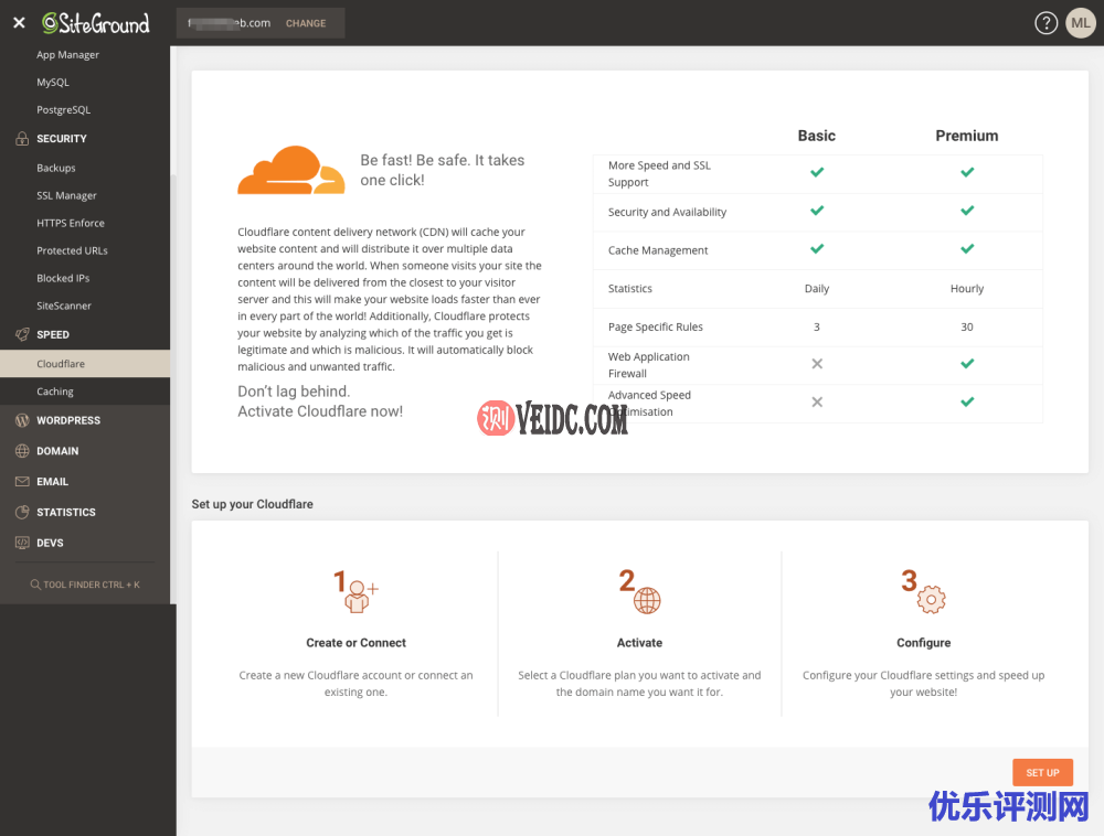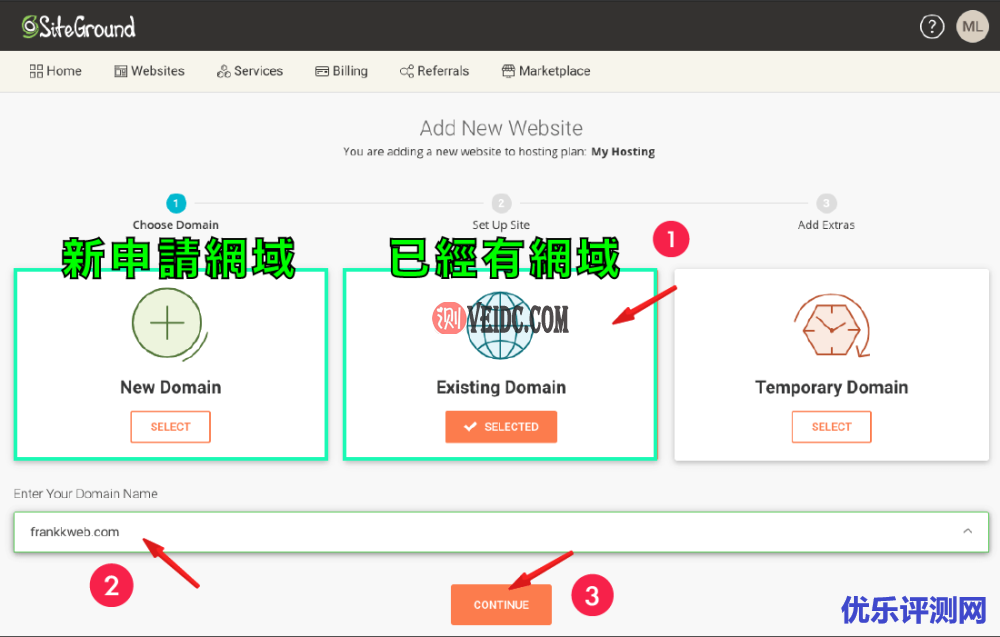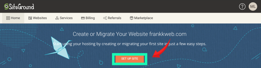 首次登录SiteGround后台,可点 Set Up Site 建立一个网站。