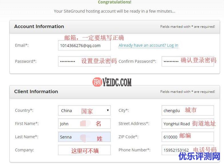 然后设置账号信息,输入邮箱、密码、地址等相关信息,如下图所示: