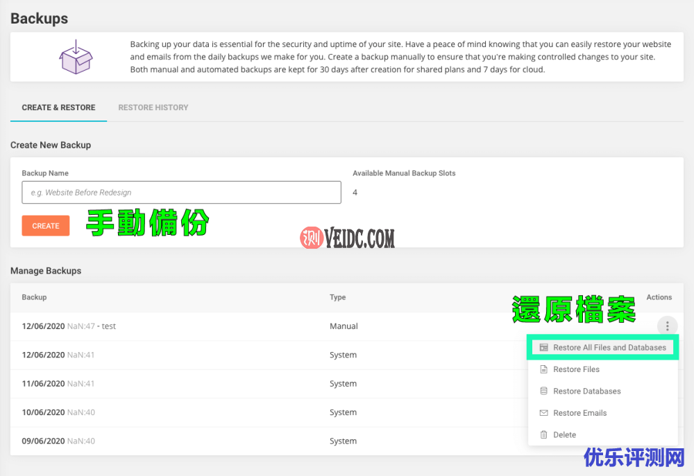 SiteGround 有自动网站备份功能(30天范围),若想手动备份网站,也可以手动操作。
