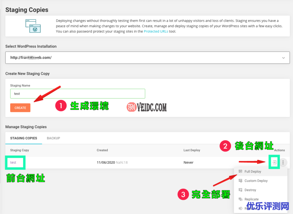 等网站完全建置或更新完毕,再进行Full Deploy正式部署(网站上线),若不需再使用,可点Destroy销毁即可。